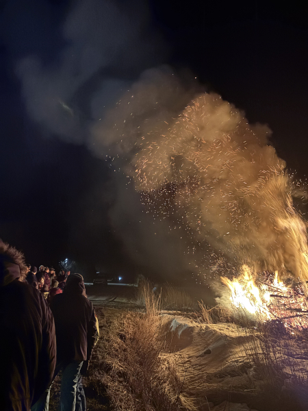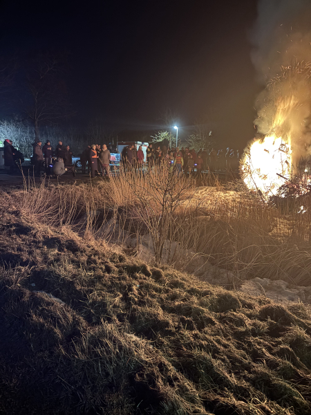 Mit kurzen, prägnanten Worten – wie wir Nordfriesen es gewohnt sind – wurde der Frühling eingeläutet, bevor die Fackeln feierlich in den Haufen gelegt wurden.